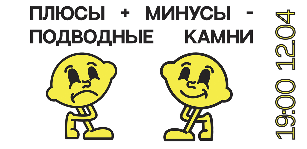 "Плюсы, минусы, подводные камни" – комедийное шоу, в котором комик впервые видит тему на экране и должен моментально раскрыть её плюсы, минусы и подводные камни.